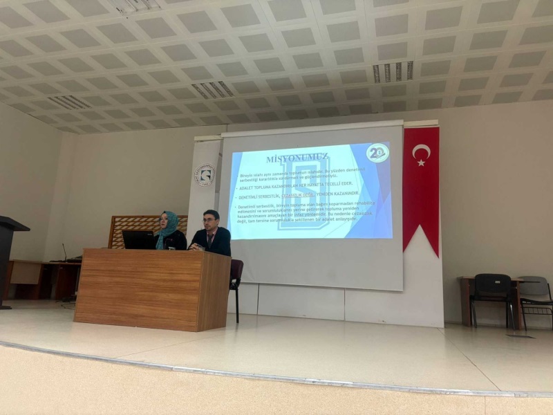 Etkinliğe Sosyal ve Beşeri Bilimler Fakültesi Dekan Yardımcısı Doç. Dr. Münir Şahin, Sağlık Bilimleri Fakültesi Dekan Yardımcısı Doç. Dr. Ergin Temel, fakülte yetkilileri ve fakülte öğrencileri katılım sağladı. Seminer sunumunu Tokat Denetimli Serbestlik Uzmanları Hülya Al ve Erdi Umur Bekler gerçekleştirdi. Program süresince öğrenciler, infaz ve iyileştirme süreçleri üzerine sorular yöneltti; uygulamada karşılaşılan örnek durumlar ve çözüm süreçleri paylaşıldı. Etkinlik sonrasında fakülte yetkilileri tarafından müdürlük uzmanlarımıza teşekkür belgesi takdimi yapıldı.