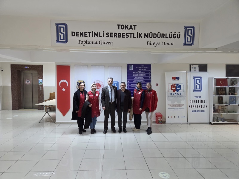 Türk Kızılayı Tokat İl Başkanı Sayın Osman DURU, Kızılay Kadın Kolları Başkanı Sayın Esra SATAN, Kızılay Gelir Getirici Faaliyet Sorumlusu Sayın Süheyla KALE, Kızılay Sosyal Medya Sorumlusu Sayın Esmanur YATMIŞ ve Kızılay Saha Sorumlusu Sayın Derya OYMAK kurum müdürümüz Vedat GÜLŞEN'i makamında ziyaret ettiler. Kurum müdürümüz denetimli serbestlik sisteminin yapısı, işleyişi ve topluma sağladığı katkılar hakkında bilgiler verdi ve iş birliği içerisinde ramazan ayında gerçekleştirilecek projeler hakkında istişareler yapıldı. Kızılay heyetine müdürlüğümüz gezdirilerek kızılay ve paydaşlarımızın katkılarıyla oluşturulan sosyal marketin işleyişi hakkına bilgiler verildi.