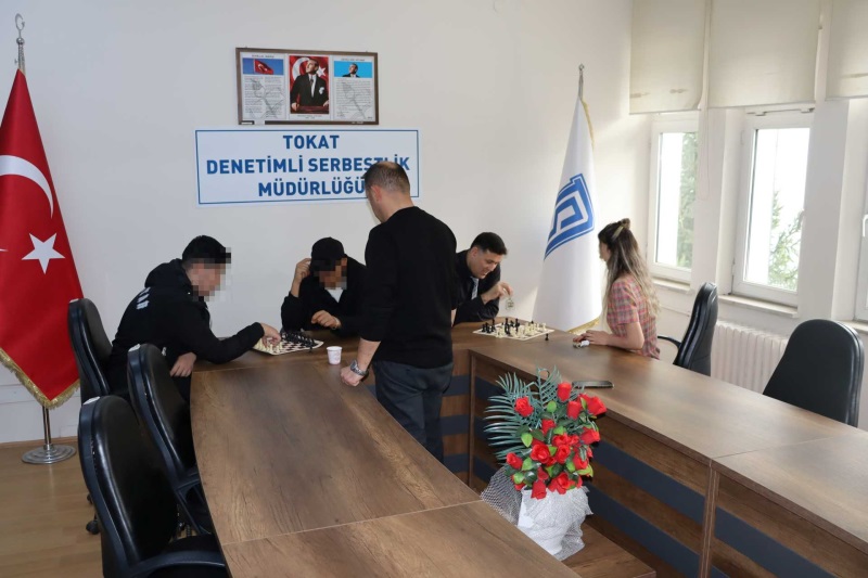 Tokat Denetimli Serbestlik Müdürlüğü Çocuk Hizmetleri Bürosu tarafından 10.12.2025 tarihinde Suça Sürüklenen Çocuklara yönelik “Benim Hamlem Benim Geleceğim” etkinliği kapsamında satranç etkinliği gerçekleştirilmiştir. Etkinlik Tokat Satranç Federasyonu Temsilcisi Göksel TASIOĞLU tarafından gerçekleştirilmiş, etkinlikte çocuklara hem satranç oyunu tanıtılmış hem de çocuklar ile satranç oyunu oynanmıştır. Satranç etkinliği tamamlandıktan sonra çocuklara yönelik boş zamanları yapılandırma ve hobi çalışması olarak Halk Eğitim Merkezi usta öğreticisi Kezban ÖKSÜZ tarafından kokulu taş kalıplama ve boyama etkinliği gerçekleştirilmiştir.