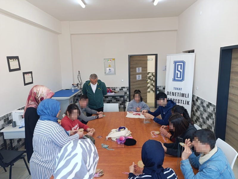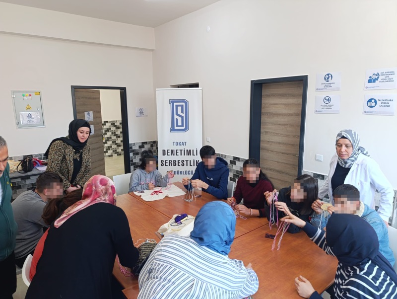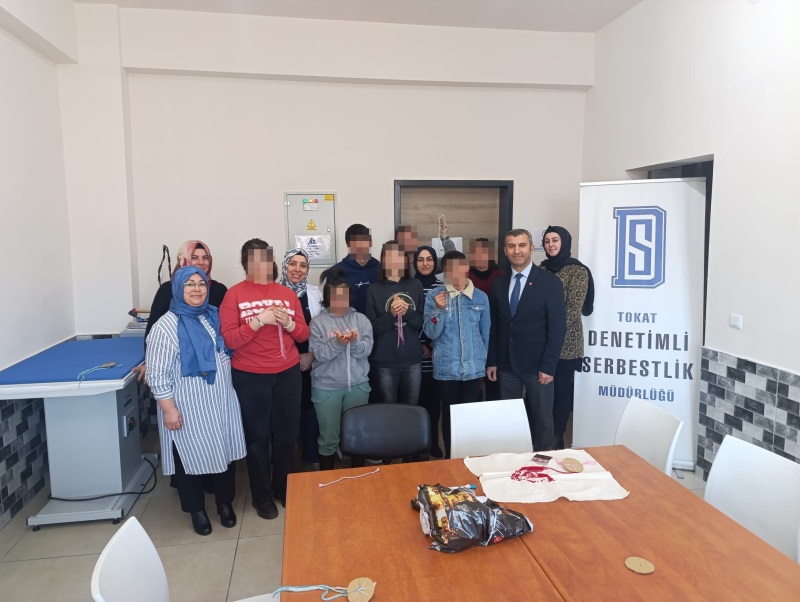 Tokat Denetimli Serbestlik Müdürlüğü, 3 Aralık Dünya Engelliler Günü kapsamında anlamlı bir ziyarete imza attı. Kurum Sosyoloğu Fatma Sezgin, Tokat Halk Eğitim Merkezinde görevli Usta Öğretici Keziban Öksüz ve denetimli serbestlik personelleri Tokat Yavuz Selim Özel Eğitim Meslek Okulunu ziyaret etti. Özel eğitime gereksinim duyan çocuklarla farklı renkteki iplerle bileklik yapma etkinliği yapıldı. Etkinlik öncesinde çocuklara, müdürlüğümüz tarafından el işiyle yapılmış çeşitli hediyeler verildi. Etkinlik sonrası çocukların mutlulukları, heyecanları gözlerinden okundu. Okul yetkilileri gerçekleştirilen ziyaretten oldukça memnun kaldıklarını ifade ederek müdürlüğümüze teşekkürlerini iletti.Kamu yararına ücretsiz çalışan yükümlüler de okulun çevre temizliğini yaparak özel eğitime gereksinim duyan çocukların konforlu bir eğitim almalarına yardımcı oldu.