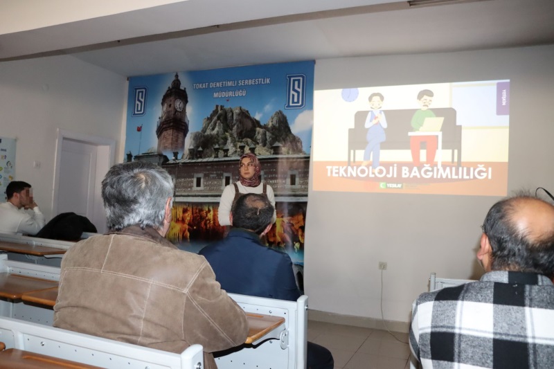 Tokat Denetimli Serbestlik Müdürlüğü’nde yükümlülere yönelik farkındalık ve eğitim çalışmaları kapsamında 24 Mart 2026 tarihinde saat 13:45’te “Aile İçi İletişim” konulu bir seminer düzenlendi.Seminer, Psikolog Nesrin Uzun tarafından gerçekleştirildi. Seminerde aile içinde sağlıklı iletişimin önemi, empati kurma, karşılıklı anlayış ve güçlü aile bağlarının bireyin hayatındaki rolü hakkında katılımcılarla bilgilendirici paylaşımlarda bulunuldu.