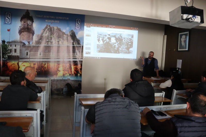 Tokat Denetimli Serbestlik Müdürlüğü, yükümlülerin milli ve manevi gelişimine katkı sağlamak amacıyla düzenlediği eğitim faaliyetlerine devam etmektedir. Bu kapsamda 13.03.2026 tarihinde müdürlüğümüz seminer salonunda “Çanakkale Şehitlerini Anma” konulu seminer gerçekleştirilmiştir.