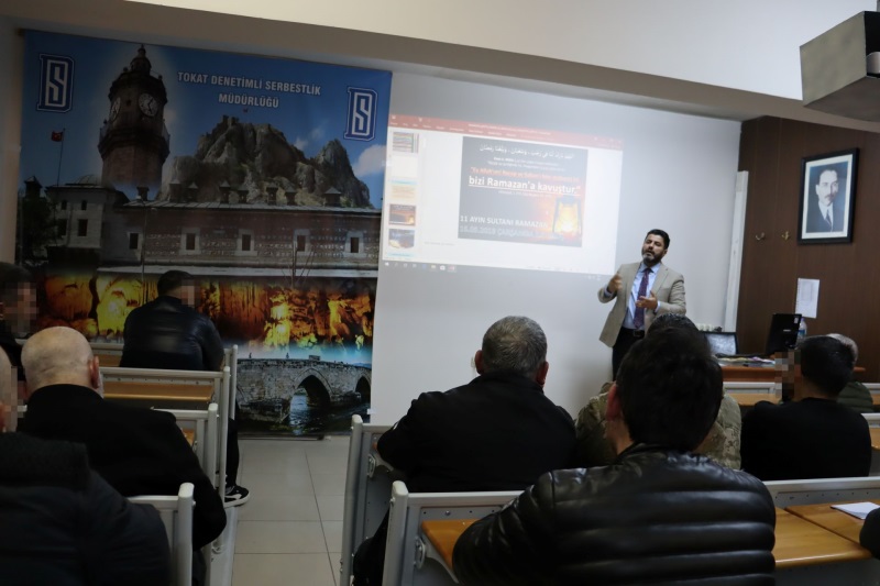 Tokat Denetimli Serbestlik Müdürlüğü, yükümlülerin manevi gelişimlerine katkı sağlamak amacıyla düzenlediği eğitim faaliyetlerine devam etmektedir. Bu kapsamda 11.02.2026 tarihinde müdürlüğümüz seminer salonunda “Dinin Fert ve Toplum Hayatındaki Yeri” konulu bir seminer gerçekleştirildi. Seminere toplam 34 yükümlü katılım sağladı.
