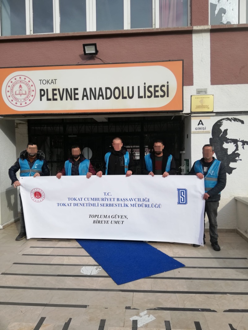 Proje kapsamında Tokat Türkiye Odalar ve Borsalar Birliği Ortaokulu, Erbaa Anadolu İmam Hatip Lisesi, Tokat Plevne Anadolu Lisesi ve Tokat Fahriye Arat Kız Anadolu İmam Hatip Lisesi’nde denetimli serbestlik yükümlülerinin katılımıyla kapsamlı temizlik ve çevre düzenleme faaliyetleri yapıldı. Okul bahçelerinde çevre temizliği, ortak kullanım alanlarında detaylı hijyen çalışmaları ve okul eşyalarının düzenlenmesine yönelik planlı çalışmalar yürütüldü.