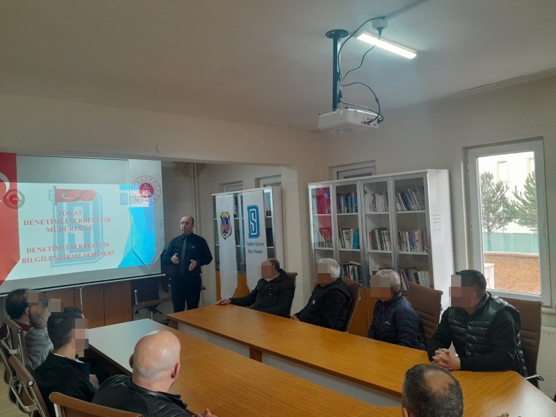 17.02.2026 tarihinde Tokat Denetimli Serbestlik Memurları Emre DAĞBAŞI ve Nadir İNAN tarafından yaklaşık 55 hükümlüye denetimli serbestlik uyum eğitimi verildi. Denetimli Serbestlik sistemi ve eski hükümlü kendi işini kurma projeleri hakkında bilgilendirme yapılan hükümlüler eğitimden oldukça memnun kaldı. El broşürleri ve afişlerle desteklenen eğitim hükümlülerin denetimli serbestlik tedbirleri hakkında detaylı bilgiler almasını sağladı. Düzenli olarak Ceza İnfaz Kurumları ile koordineli bir şekilde bilgilendirme çalışmaları Tokat T Tipi Kapalı ve Açık Ceza İnfaz Kurumu ve Niksar K2 Ceza İnfaz Kurumlarında devam ettirilecektir.