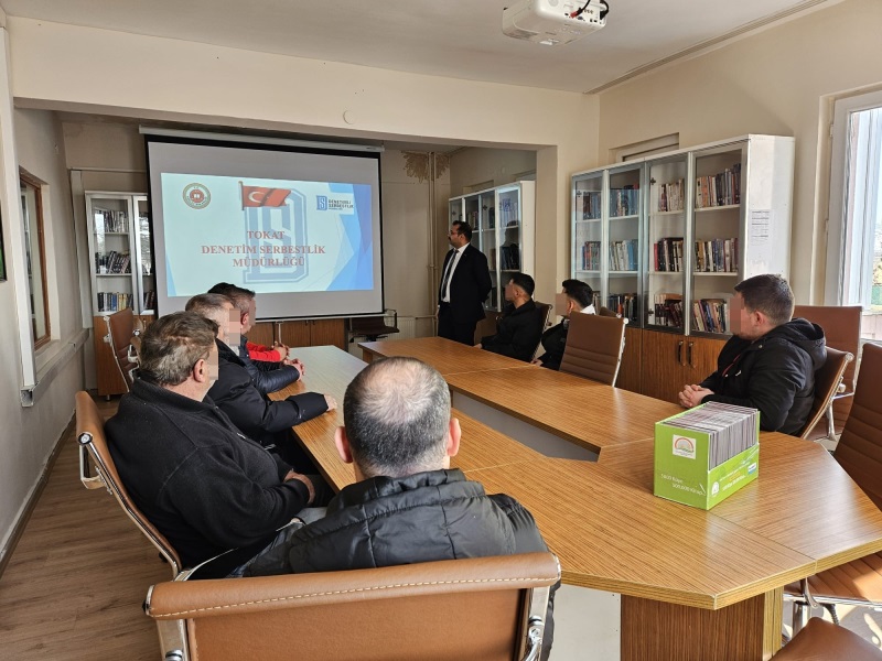 03.03.2026 tarihinde Tokat Denetimli Serbestlik Memurları Emre DAĞBAŞI ve Mustafa COŞAN tarafından yaklaşık 25 hükümlüye denetimli serbestlik uyum eğitimi verildi. Denetimli Serbestlik sistemi ve eski hükümlü kendi işini kurma projeleri hakkında bilgilendirme yapılan hükümlüler eğitimden oldukça memnun kaldı. El broşürleri ve afişlerle desteklenen eğitim hükümlülerin denetimli serbestlik tedbirleri hakkında detaylı bilgiler almasını sağladı. Düzenli olarak Ceza İnfaz Kurumları ile koordineli bir şekilde bilgilendirme çalışmaları Tokat T Tipi Kapalı ve Açık Ceza İnfaz Kurumu ve Niksar K2 Ceza İnfaz Kurumlarında devam ettirilecektir.